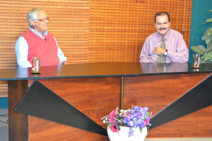 Momentos de la grabación del programa «El Enfoque» dedicado a la Música Para Gran Canaria, José Luis López de Iniesta entrevista a Pedro Schlueter Musicólogo acerca de las piezas musicales compuestas en el exterior que tenían como protagonista a Las Islas Canarias. Este programa se emitirá el próximo Viernes día 13 de Junio en canal 8 TV en la TDT a las 23.00 Horas