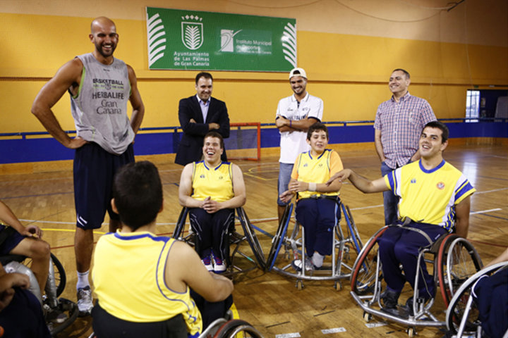Antes de acometer la gran aventura de enfrentarse a equipos peninsulares como el CAI Zaragoza, el Bilbao BSR o el Sant Nicolau, los jugadores del Herbalife Gran Canaria Xavi Rey y Óscar Alvarado quisieron darle ánimos. Así, el pasado martes 17 de junio ambos visitaron el entrenamiento vespertino del Econy, en el recinto capitalino del Polideportivo García San Román. Ambos hablaron largo y tendido con todos los niños y jóvenes del grupo, y luego compartieron un divertido rato de baloncesto en silla de ruedas.