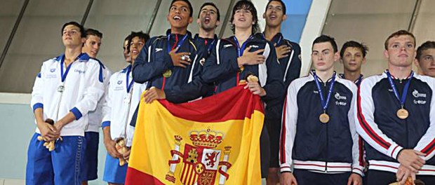 El nadador del CN Metropole contribuyó a que España lograra esta buena cosecha de metales. El grancanario visitó en varias ocasiones el podio. Estuvo en lo más alto del ‘cajón’ como integrante del cuarteto que tomó parte en el relevo 4×200 libre. Alejandro García, José Nieto, Hugo González y César Castro consiguieron la medalla de oro con un tiempo de 7:36.16. No fue la única ‘presea’ que se colgó el metropolista en las citas de relevos, ya que conquistó el bronce en el 4×100 libre.