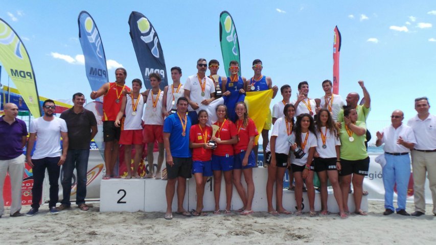 Éxito rotundo de las selecciones canarias masculina y femenina en el reciente Campeonato de España de Selecciones Autonómicas en edad escolar de voley playa, celebrado sobre la arena de la localidad murciana de San Javier.