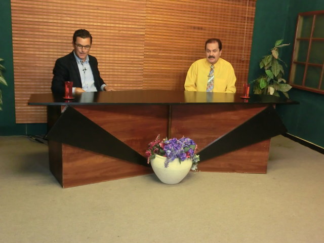 Momentos de la grabación del programa «El Enfoque» dedicado a «Telde». José Luis López de Iniesta entrevista a Pablo Rodríguez Primer Teniente de Alcalde de la Ciudad de los Faycanes. Este programa se emitirá el próximo Viernes día 18 de Julio en canal 8 TV en la TDT a las 22.00 Horas.