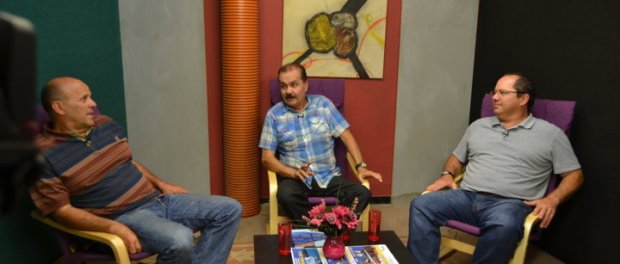 Momentos de la grabación del programa Canal Deportivo especial de Verano dedicado a la Vela. José Luis López de Iniesta entrevista a Alejandro Barrera y Domingo Manrique Presidente y Vicepresidente de la Federación Insular de Vela. Este programa se emitirá el próximo Lunes día 21 de Julio a las 23.00 Horas en Canal 8 TV en la TDT.