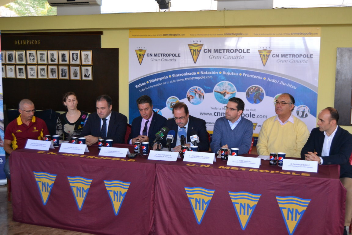 Este pasado Miércoles día 07 de Enero se presentaba en las instalaciones del CN Metropole la Vigésimo Séptima Edición de la Pepsi Diving Cup que se va a celebrar en este mismo club del 09 al 11 de Enero. Al acto asistieron y presidieron la mesa José Feo Presidente del CN Metropole, José Maroto Presidente de la Federación Canaria de Natación, Ramón Miranda Director General del Gobierno de Canarias, Lucas Bravo de Laguna Consejero Deportes del Cabildo Insular, Carlos Ester Concejal Deportes Ayuntamiento Las Palmas, Domingo Bravo en representación del Patrocinador Pepsi, Macarena Salgado responsable de Saltos del CN Metropole y Enrique Martínez como responsable de este evento de Saltos.