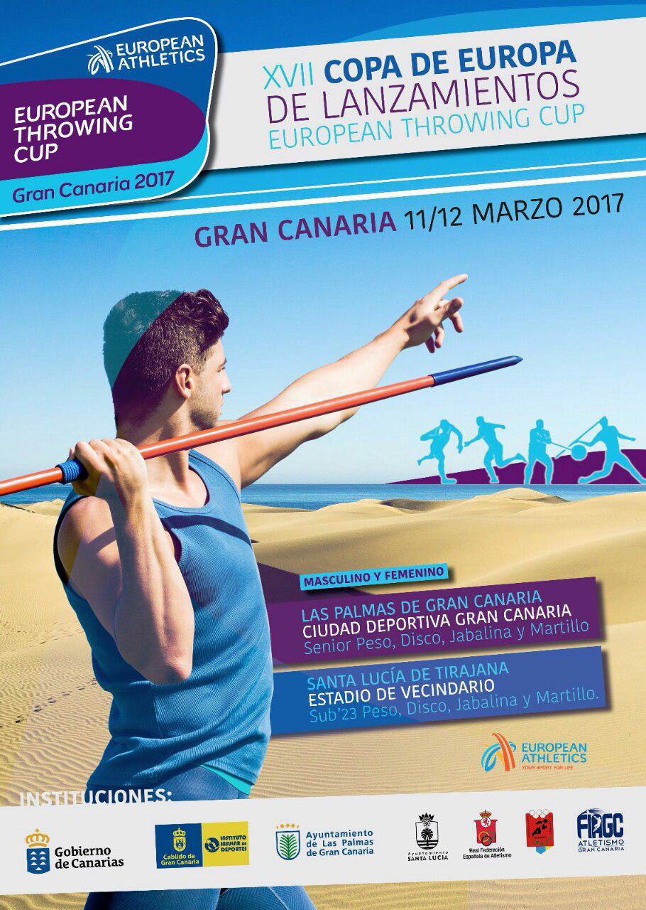 Unos 400 atletas de 36 países distintos se darán cita este fin de semana en Gran Canaria para asistir a la Copa de Europa de Lanzamientos, evento con un notable seguimiento en casi toda Europa, hasta el punto que por ejemplo en Finlandia el deporte nacional es el lanzamiento de jabalina….atletas olímpicos disfrutarán de nuestro estupendo clima este próximo fin de semana.Las dos sedes serán la Ciudad Deportiva Gran Canaria Senior Peso,Disco, Jabalina y Martillo y en el Estadio de Vecindario en Santa Lucía de Tirajana Sub-23 Peso,Disco,Jabalina y Martillo tanto en categoría Maculina como Femenina. El Lunes 13 podrán ver un amplio reportaje dentro de nuestro programa Canal Deportivo a las 19.00 Horas y el Martes 14 a las 21.00 Horas en Canal 8 en la TDT.