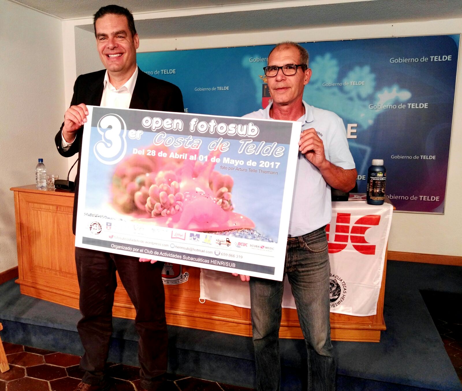 Con la presencia del concejal de Actividad Física y Deportes del Ayuntamiento de Telde, Diego Ojeda, el presidente del Club de Actividades Subacuaticas Henrisub, Gonzalo Henríquez, se presentaba en la Sala de Prensa de las Casas Consistoriales de la Plaza de San Juan, la tercera edición del Open Fotosub Costa de Telde.El evento que tiene su escenario en las calas de Taliarte y Tufia se celebrará el fin de semana del 28 de abril al 1 de mayo y todavía dispone de plazo hasta el próximo martes día 24 para formalizar nuevas inscripciones para el “3.er Open Fotosub Costa de Telde”.