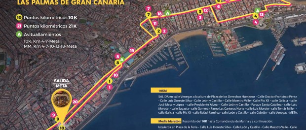 Se trata de un circuito predominantemente llano y con largas rectas, lo que favorecerá la realización de buenas marcas. Además, como cada año, pasará por lugares emblemáticos de la ciudad y, como no, por la avenida de la playa de Las Canteras, que tendrá especial protagonismo en la distancia del Medio Maratón.
