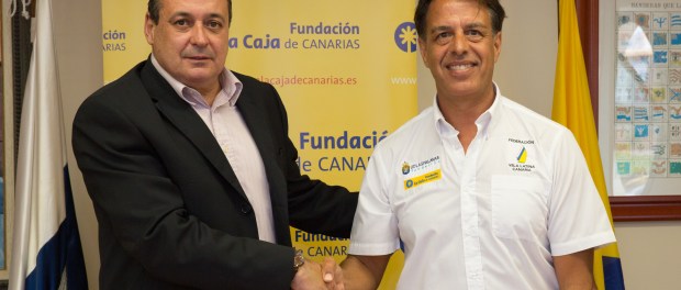 El presidente de la Fundación La Caja de Canarias, Blas Trujillo y el presidente de patrocinio con el que la institución apoya este deporte vernáculo de gran arraigo en Gran Canaria, y cuya aportación asciende a 20.000 euros.