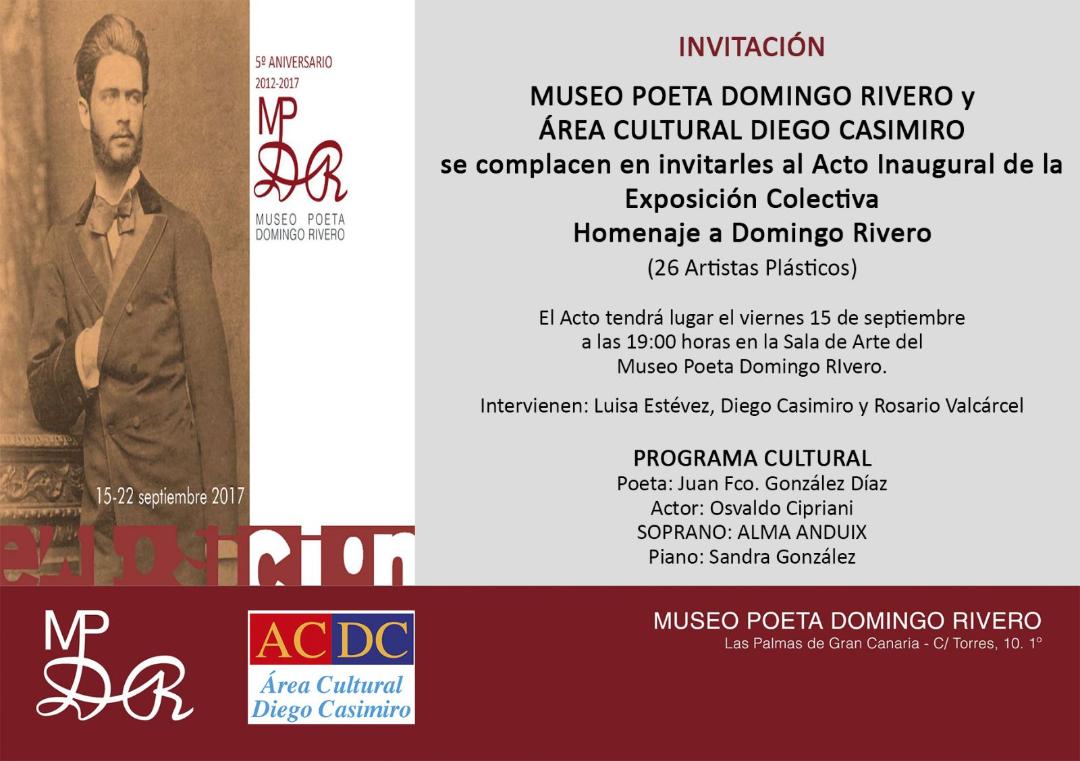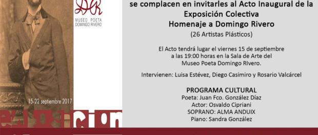 El Museo Poeta Domingo Rivero y el Area Cultural Diego Casimiro inauguró el pasado Viernes día 15 de Septiembre a las 19.00 Horas la «Exposición Colectiva Homenaje Domingo Rivero» con 26 aristas plásticos.