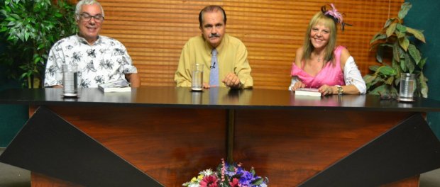 Momentos de grabación del programa de debate El Enfoque con el tema «El Libro de Dos Portadas» José Luis López de Iniesta entrevista a Rosario Valcárcel y a Luis León Barreto acerca de la publicación de su último libro conjunto con dos portadas «Cuentos Traviesos» de Luis León Barreto y «Cuentos Gozosos» de Rosario Valcárcel. Este programa lo podrán ver el próximo Viernes día 10 de Noviembre a las 21.00 Horas en Canal 8 en la TDT.