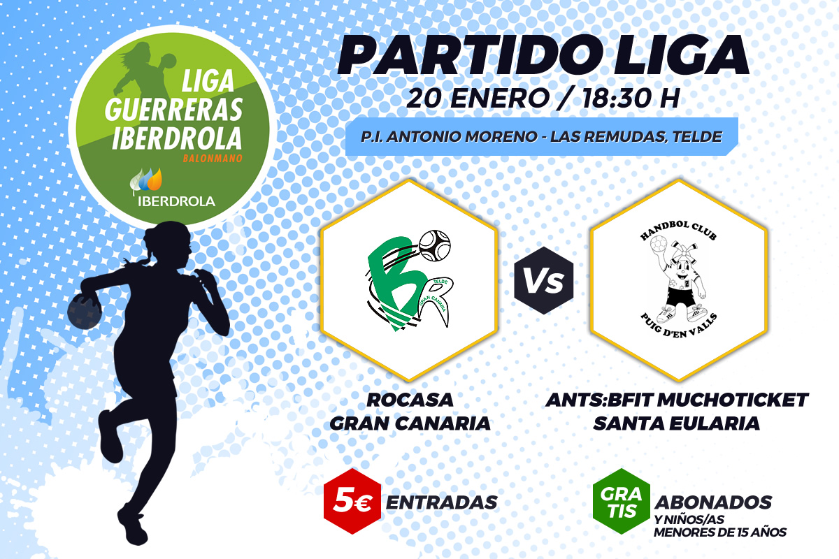 Retransmisión en Directo para toda España del encuentro de la liga Guerreras Iberdrola entre el Rocasa Gran Canaria Ace y el Santa Eularia que se disputará en el Pabellón Municipal Antonio Moreno de la Ciudad de Telde el Sábado día 20 de Enero a las 18.30 Horas.