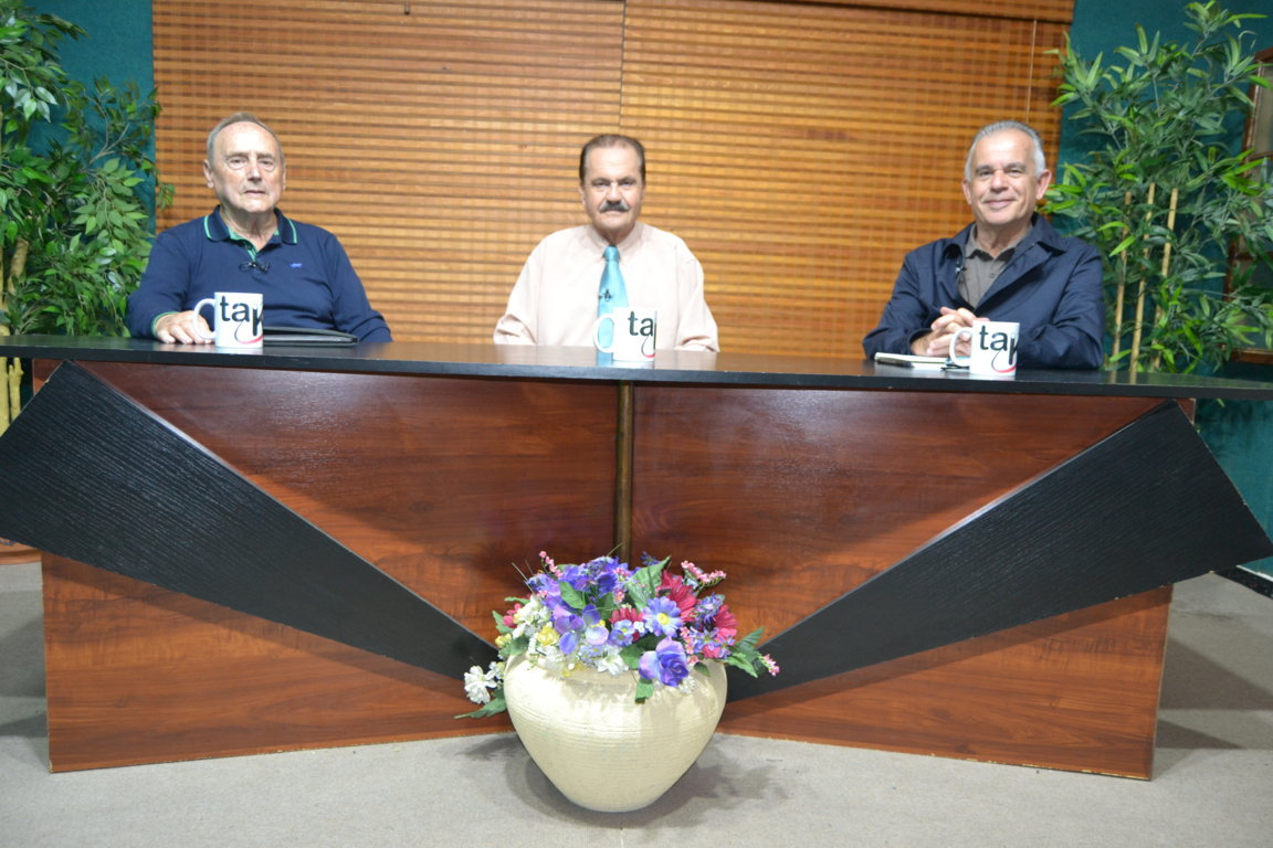 Momentos de la grabación del programa de debate de Televisión El Enfoque con el tema de «El Transporte en Gran Canaria». José Luis López de Iniesta entrevista al Ingeniero Angel López Torné y al Asesor del Programa José Manuel Betancort acerca de los temas que están en el orden de la actualidad como La Metroguagua y El Tren entre otros. Este programa se emitirá el Viernes 14 de Junio en Radio Televisión Mogán a las 21.15 Horas, en El 13 TV y en Diámetro TV.