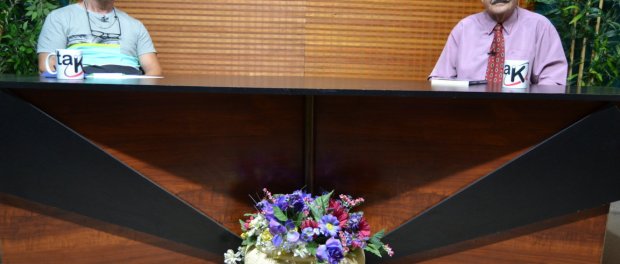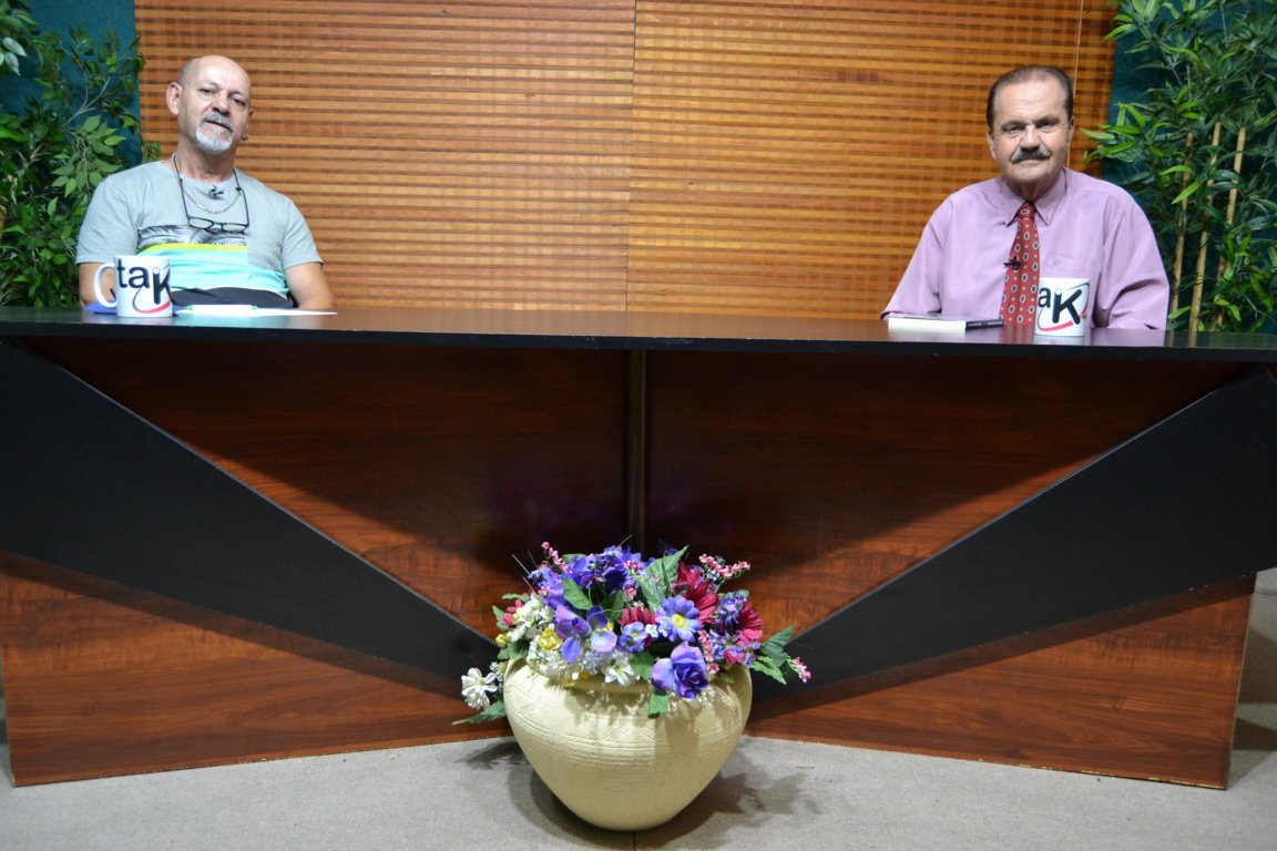 Momentos de la grabación del programa de debate de Televisión El Enfoque con el tema de «La Independencia de Canarias». José Luis López de Iniesta entrevista al Escritor y Cantautor Isidro Santana que abordaba el tema de la independencia de estas Islas. Este programa se emitirá el Viernes 21 de Junio en Radio Televisión Mogán a las 21.15 Horas, en El 13 TV y en Diámetro TV.