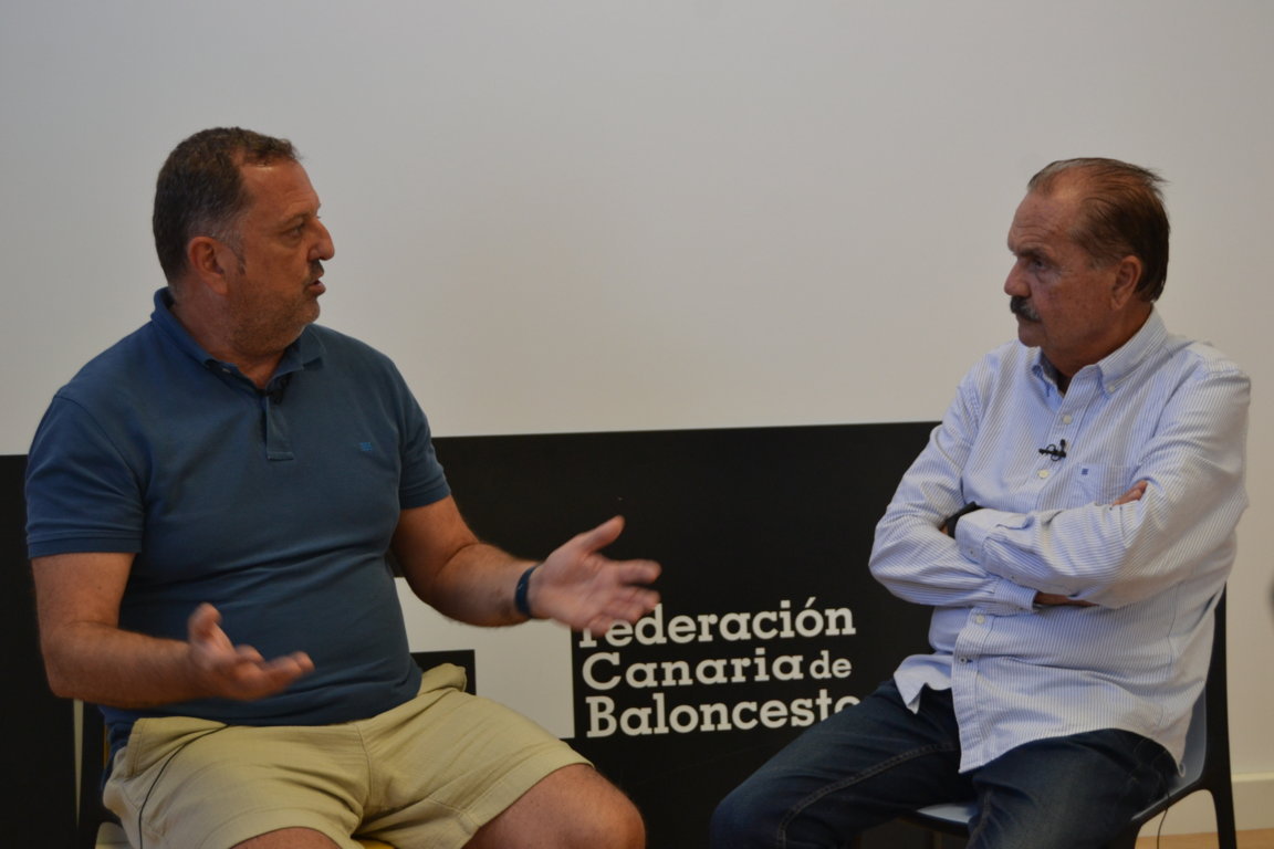 Momentos de la grabación del especial del Canal Deportivo dedicado a la Federación Canaria de Baloncesto». José Luis López de Iniesta entrevista a Carlo Olano Presidente de la Federación Canaria de Baloncesto acerca de la actividad de esta federación en las Islas . Este programa se emitirá el próximo 24 de Junio a las 21.00 Horas en Este Canal Televisión, Radio Televisión Mogán, Diámetro Televisión etc.