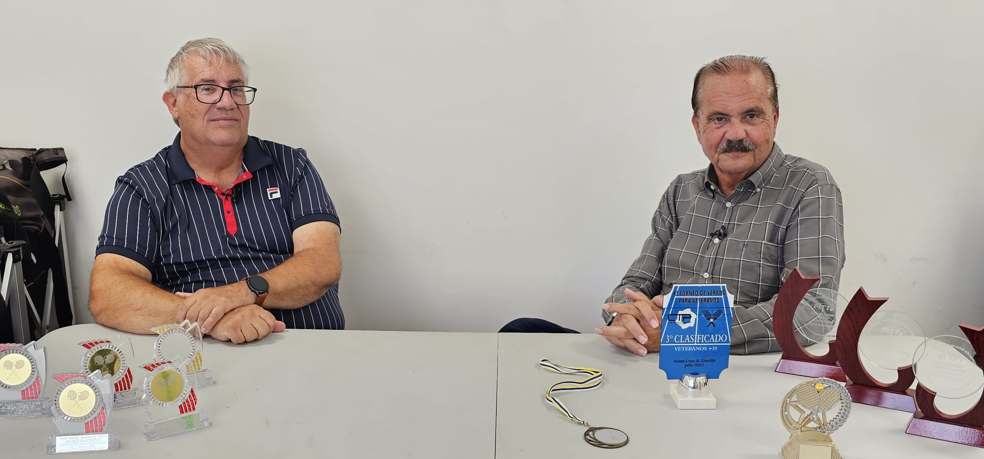 Momentos de la grabación del espacio «De Frente» del Canal De Televisión de la Federación Canaria de Tenis. José Luis López de Iniesta entrevista a Alfonso Martínez Presidente del Club de Tenis Pabellón acerca de su larga vida deportiva. Este programa lo podrán ver próximamente en el Canal de Televisión y YOUTUBE además de la web de la Federación Canaria de Tenis