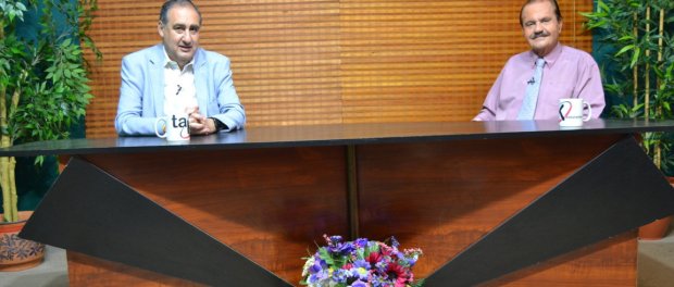 Momentos de la grabación del programa de debate de Televisión El Enfoque con el tema de «La Industria en Canarias». José Luis López de Iniesta entrevista al Viceconsejero de Industria, Comercio y Consumo Felipe Afonso El Jaber acerca de la evolución de la Industria en Canarias. Este programa se emitirá el Viernes 18 de Octubre en Radio Televisión Mogán a las 21.15 Horas, en El 13 TV, Diámetro TV y en el Canal de Youtube de Tak Televisión.