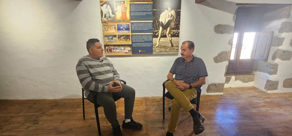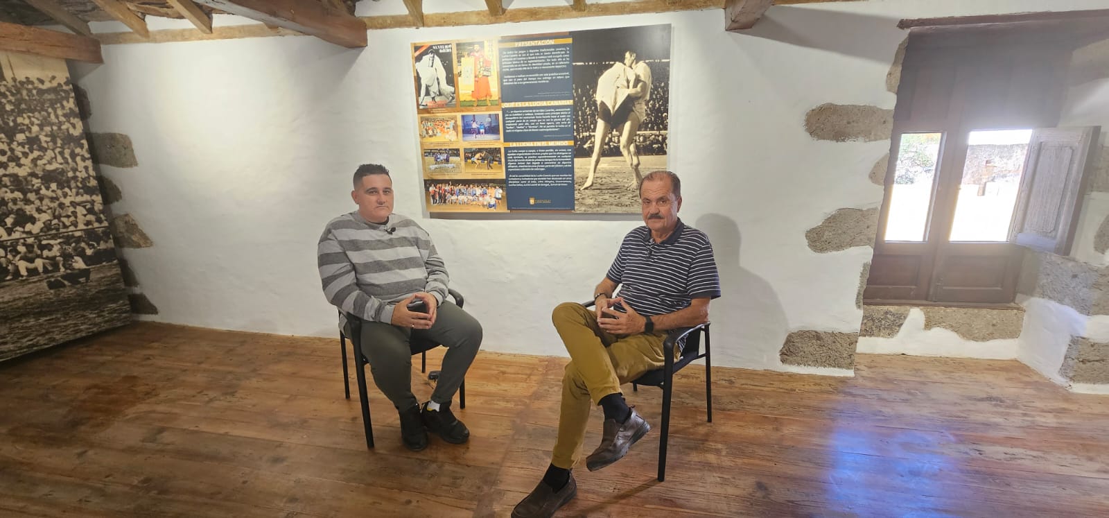 Momentos de la grabación de la entrevista del Canal Deportivo dedicado ala Federación Canaria de Lucha Canaria. José Luis López de Iniesta entrevista en La Casa de Postas de la Villa de Ingenio al Presidente José Antonio Caballero acerca de la salud deportiva del deporte autóctono por excelencia de las Islas Canarias como es la Lucha Canaria. Este programa se emitirá en las emisoras de Televisión de Canal Deportivo y Tak Televisión a partir del 04 de Noviembre.