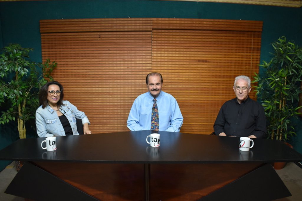 Momentos de la grabación del programa de debate de Televisión El Enfoque con el tema de «Círculo Mercantíl» José Luis López de Iniesta entrevista a la Presidenta Victoria Pérez y a su Vicepresidente Vicente Gómez acerca de esta legendaria Sociedad y su futuro emergente .Este programa se emitirá el Viernes 30 de Mayo a las 21.15 Horas, en Radio Televisión Mogán, El 13 TV(Argentina), Diámetro TV y en el Canal de YOUTUBE el Sábado 31 de Mayo a las 18.00 Horas de Tak Televisión.
