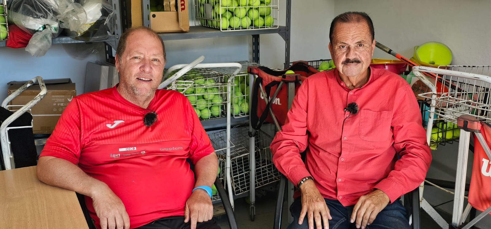 Momentos de la grabación del espacio «De Frente» del Canal De Televisión de la Federación Canaria de Tenis. José Luis López de Iniesta entrevista a Alberto Díaz Romero Entrenador de la sección de Tenis del Complejo Deportivo Santa Cruz-Ofra acerca de su extensa vida como jugador y entrenador. Este programa lo podrán ver próximamente en el Canal de Televisión y YOUTUBE además de la web de la Federación Canaria de Tenis.