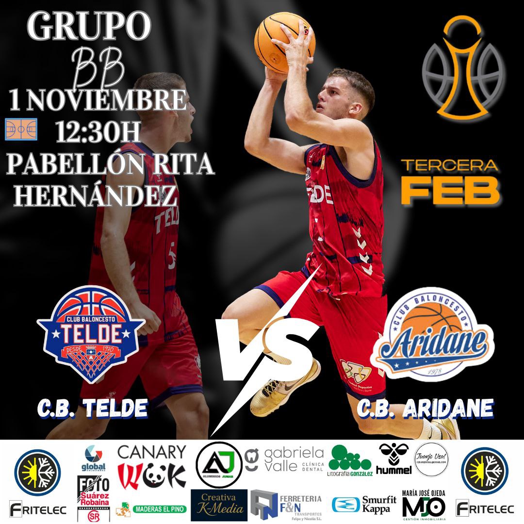 Quinta Jornada de la Liga Tercera FEB Grupo BB que enfrenta al Club Baloncesto Telde con el Club Baloncesto Aridane en el Pabellón Rita Hernández en la jornada del Sábado día 1 de Noviembre las 12.30 Horas.