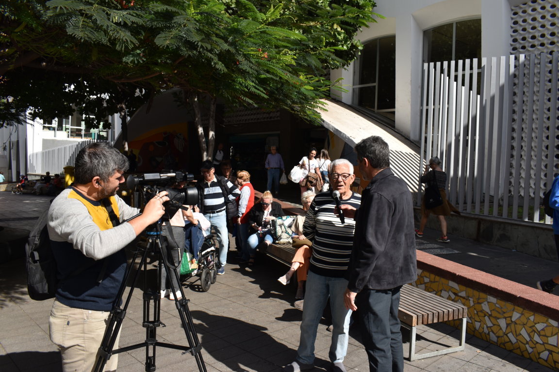 Momentos de la grabación de nuevos reportajes a pie de calle de la sección «Que Piensas?» dentro del programa de Televisión No Somos Mayores que dirige y presenta Esteban Rodríguez. El programa No Somos Mayores que presentan Pedro de Pablo y José Manuel Betancor se está emitiendo en Televisión desde el año 2010 de forma ininterrumpida.