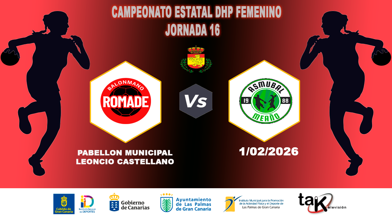 «XVI JORNADA ESTATAL DHP CB ROMADE-BM ASMUBAL MEAÑO» 01-02-2026 Publicado en 27 enero, 2026 por telecomunicacionactivacanaria en HOME, TV EN DIRECTO // 0 Comentarios Retransmisión en directo de la XVI Jornada del Campeonato Estatal DHP disputada entre el Club Balonmano Romade y el Balonmano Asmubal Meaño en el Pabellón Leoncio Castellano el pasado Domingo 01 de Febrero de 2026 a las 12.30 Horas. Comparte esto: Comparte en Facebook (Se abre en una ventana nueva) Facebook Compartir en X (Se abre en una ventana nueva) X Me gusta Cargando... Relacionado PROGRAMA RETRANSMISIONES DEPORTIVAS TELEVISION