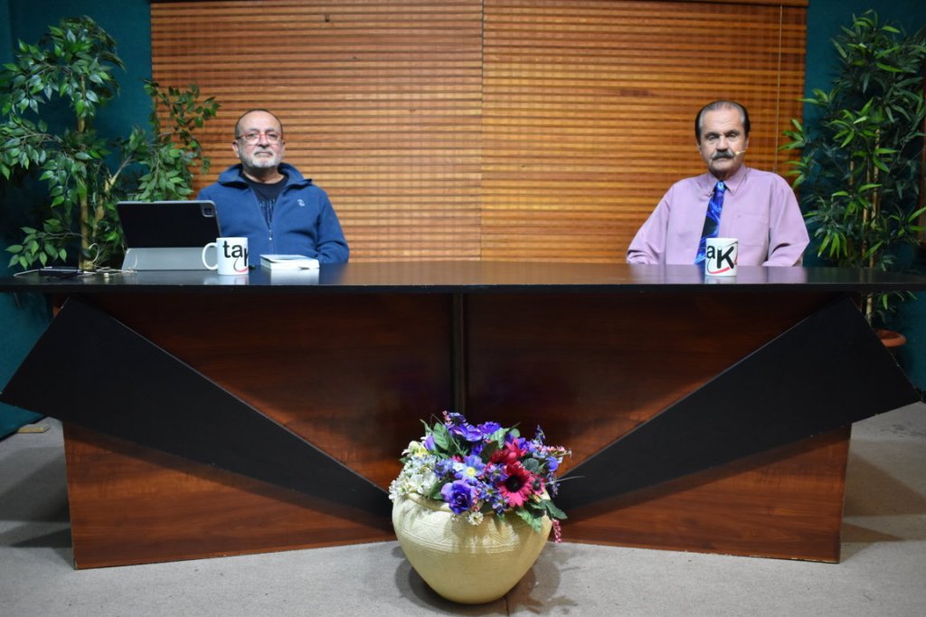 Momentos de la grabación del programa de debate de Televisión El Enfoque con el tema de «Represión Franquista en Canarias». José Luis López de Iniesta entrevista aL Historiador y Profesor Diego Alexis Orihuela Suárez acerca de la Represión Franquista en Canarias. Este programa se emitirá el Viernes 06 de Marzo en Radio Televisión Mogán a las 21.15 Horas, en El 13 TV y en Diámetro TV.